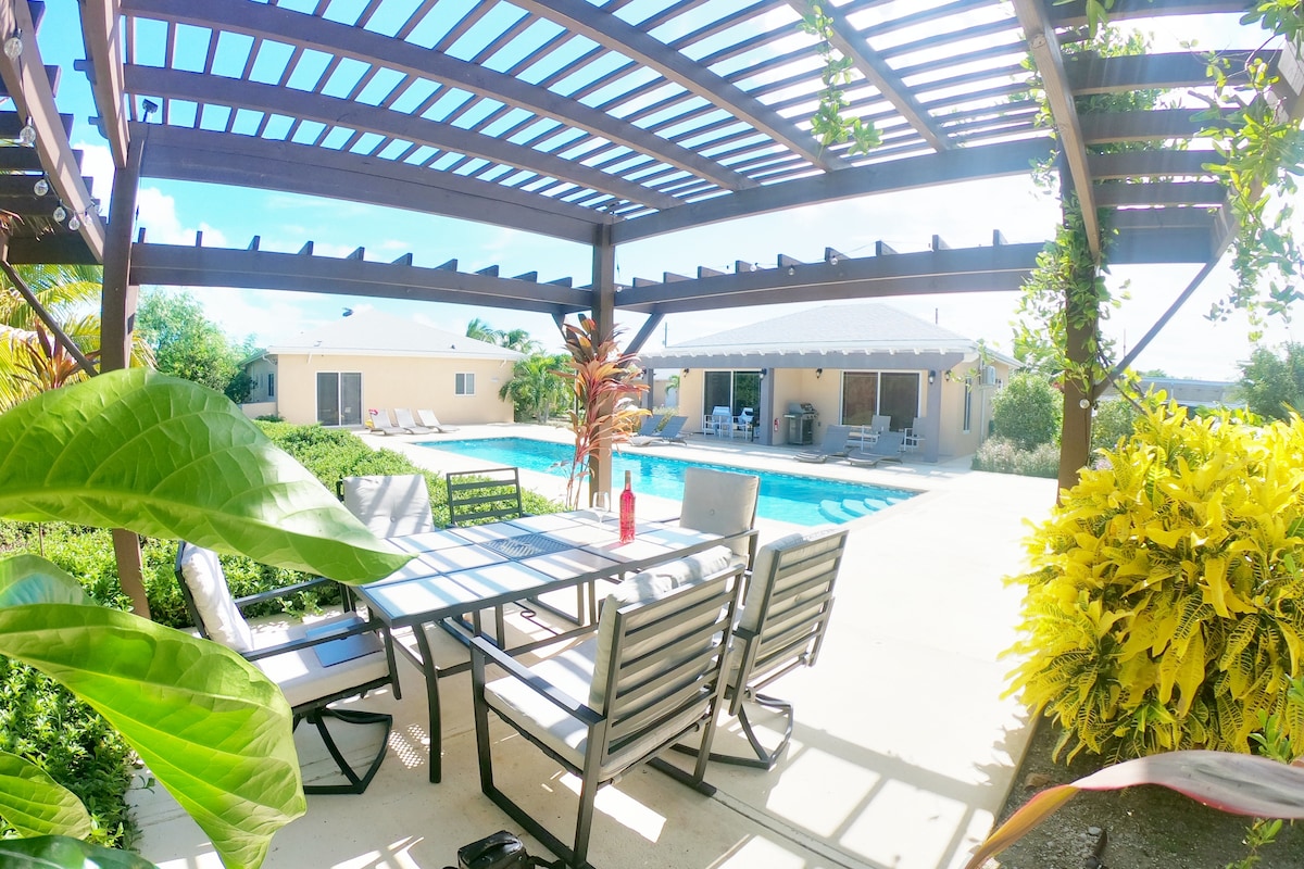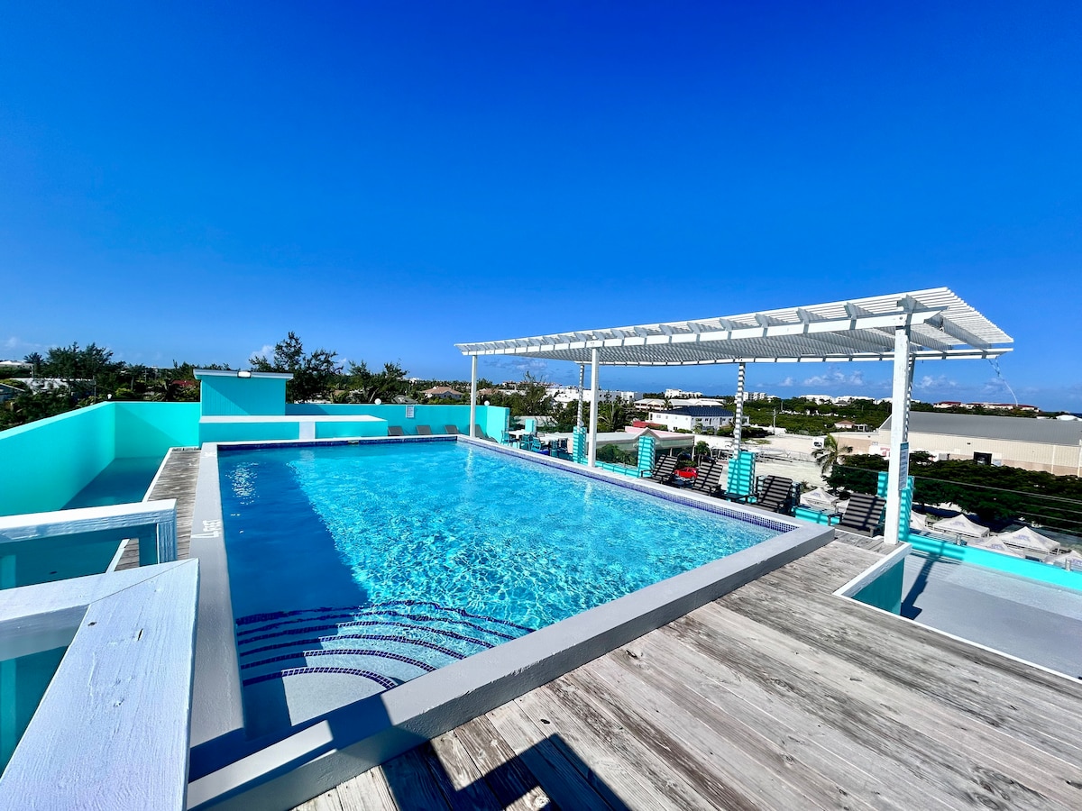 Estudio en gran villa con cocina americana, nevera con congelador y piscina. Capacidad para 2 personas con una cómoda cama queen. ¡A solo 2 minutos a pie de Grace Bay Beach te espera un snorkel privado! Ubicada entre el lujo del Windsong Hotel y el Beaches Sandals Resort, muy cerca de la vida nocturna, restaurantes (6 restaurantes a pie de la casa) y supermercados, pero nuestra villa está apartada para una relajación tranquila. Ideal para parejas o personas solteras que buscan una escapada isleña. Alquiler de coches disponible.