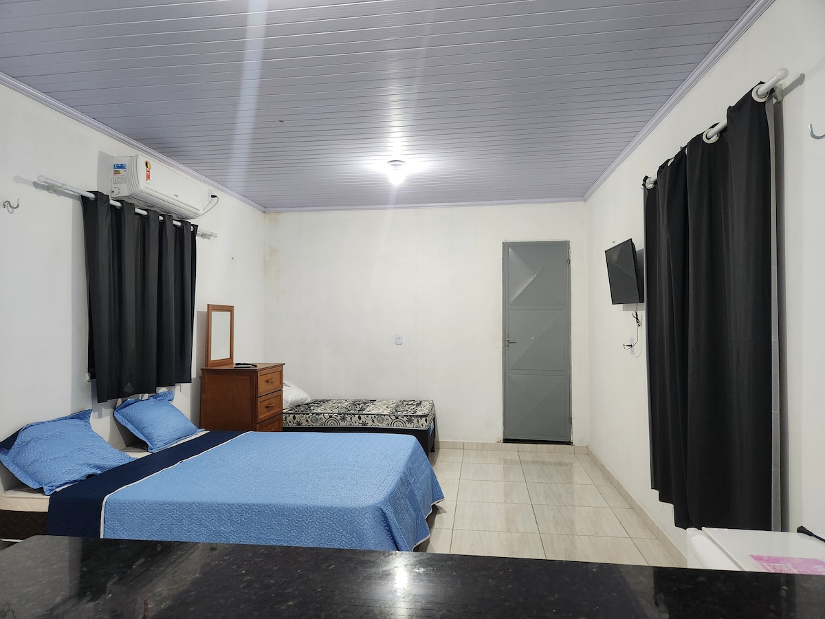 Apartamento com ar-condicionado, amplo e confortável, ideal para até 3 pessoas. Localização estratégica na saída de Tutóia (bairro Comum), a apenas 2 min da rota para Barreirinhas — perfeito para quem faz a Rota das Emoções (entre Barreirinhas e Parnaíba/Jericoacoara). Possui cama de queen + solteiro, TV, frigobar, bancada com pia e banheiro privativo. Próximo a restaurantes, comércios e posto de gasolina.
