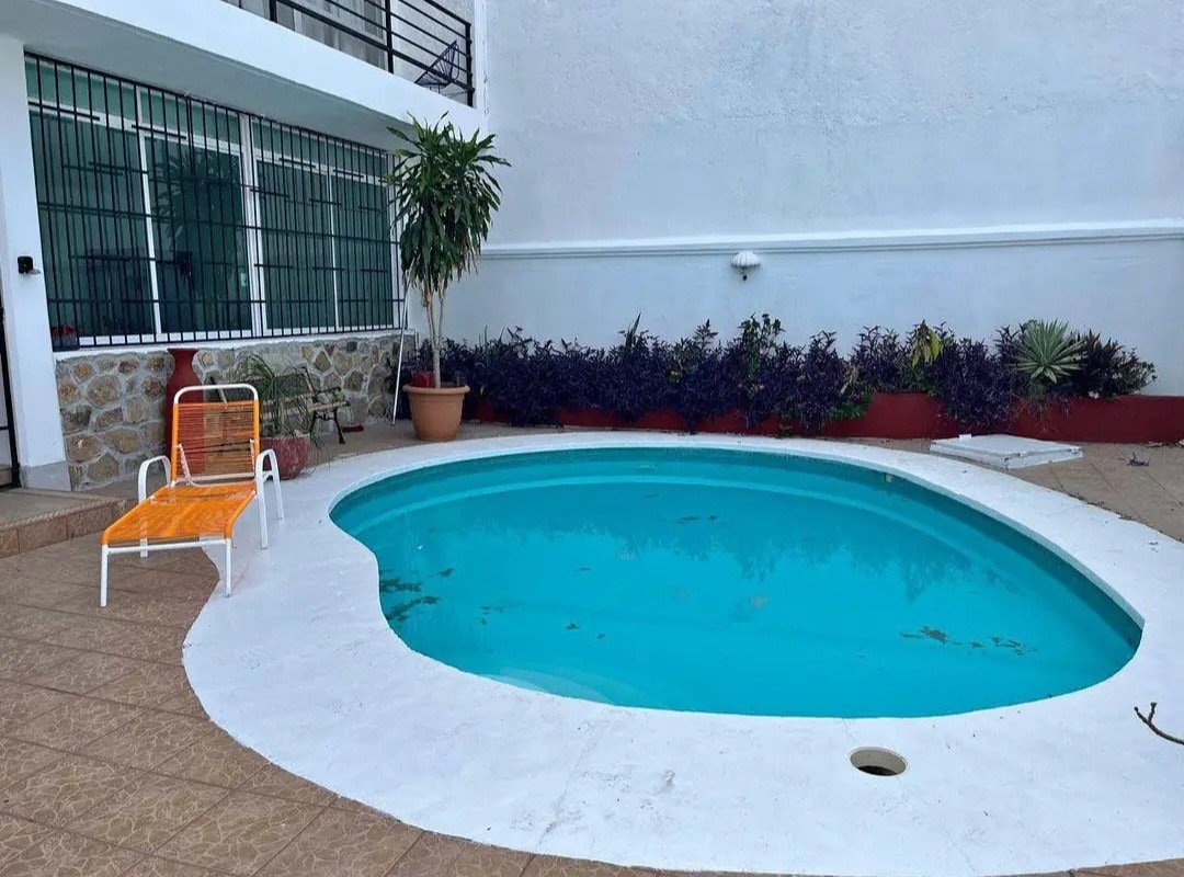Bonita casa con alberca chica, pet friendly, internet, home office, totalmente climatizada, tv/cable, cocina integral, sala, comedor, casa 8px y 3 más con *costo extra, 2 1/2 baños/agua caliente, jardín, garage p/2 autos medianos (verificar tamaño de los autos con el anfitrión), se aceptan mascotas (preguntar costo extra) Playa a 20 min. Centro Comercial a 2 min. Gasolinera a 2 min. Oxxo a 2 min. Centro a 10 min. Central de autobuses a 10 min. Para estancias largas preguntar por las condiciones.