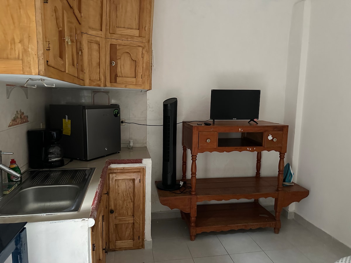 Cuarto privado tipo estudio con entrada independiente. Cama Queen, baño propio, aire acondicionado, WiFi, TV con Netflix y Prime Video. Ofrecemos productos de higiene Melaleuca (shampoo, jabón corporal, espumoso para manos y gel antibacterial). Espacio cómodo y céntrico, a dos cuadras del parque central. No se permite fumar ni recibir visitas. Solo para adultos. Ideal para descansar o trabajar con tranquilidad. ¡Bienvenidos a Casa de Teru!