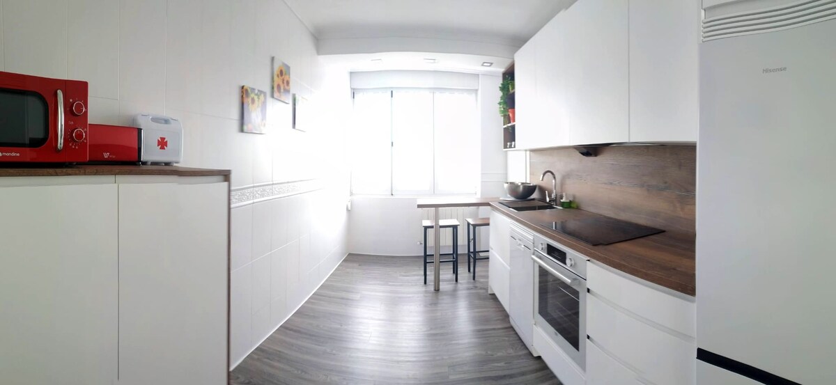 Disfruta de la sencillez de este alojamiento tranquilo y céntrico. Piso reformado en el 2021 en el centro de Mungia, ideal para parejas o familias. - 2 habitaciones (1 cama de matrimonio en cada una). - 1 baño - Vestidor - Salón - Cocina No dispone de parking privado pero es fácil aparcar en la zona. Es un cuarto piso SIN ASCENSOR. A 13km de las playas de Bakio y Gorliz y a 16km de Bilbao. A 10km del Aeropuerto de Bilbao. Perfecto para conocer los alrededores de la provincia de Bizkaia.