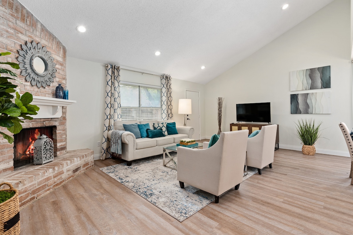 ¡Ubicación privilegiada! Retiro espacioso y sereno Bienvenido a tu escapada perfecta, que ofrece 2,306 pies cuadrados de espacio habitable abierto y luminoso lleno de luz natural y comodidad. La lujosa suite principal cuenta con una cama tamaño king con colchón de primera calidad, muebles elegantes, un televisor de 65 pulgadas y un baño extragrande completo con una relajante bañera de jardín. Dos camas tamaño queen adicionales La amplia sala de estar invita a la relajación con sofás de cuero genuino de tamaño completo y un televisor de 70 pulgadas, mucho espacio para que todos se relajen juntos.