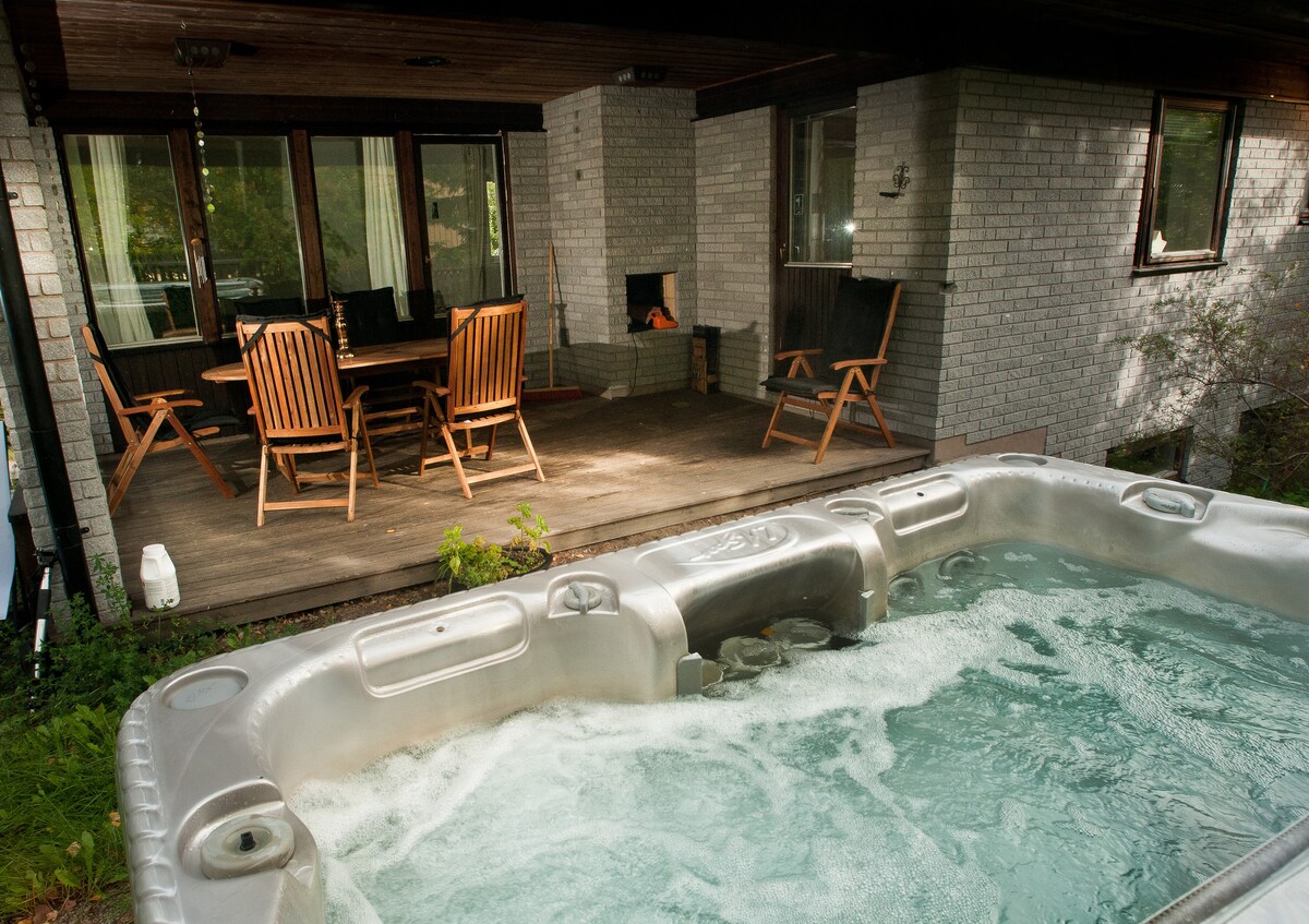 Minivilla de nueva construcción con sensación de lujo en zonas pintorescas. Se puede llegar al lago y al alquiler de canoas en un corto paseo, la reserva natural de Tyresta se encuentra junto a la casa con millas de rutas de senderismo y senderos para correr. Relájate en la bañera de hidromasaje bajo las estrellas. Aquí se respira tranquilidad, mientras que el bullicio de la ciudad está a solo 15 minutos en coche. Si no tienes coche, puedes desplazarte cómodamente en autobús. También puedes reservar aquí entrenamiento personal o yoga durante tu estancia. Bienvenido a la idílica Gudö. ¡Bienvenido a Villa Granskugga!