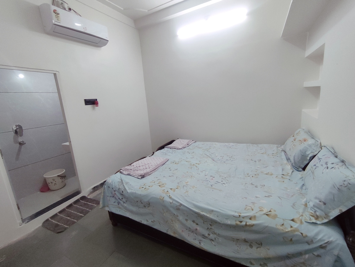 Alojamiento familiar económico cerca de Mahakaleshwar (900 m) Disfruta de una estancia limpia, acogedora y cómoda en nuestra casa de huéspedes, a solo 900 metros del templo Mahakaleshwar. Ideal para familias y peregrinos, la habitación está bien mantenida y es asequible. Situado en la zona del mercado principal, con muchos restaurantes y tiendas cerca. Las comodidades incluyen aire acondicionado, wifi, géiser, ropa de cama limpia y un ambiente tranquilo, perfecto para una estancia agradable, segura y cómoda en Ujjain, con fácil acceso al transporte y a las atracciones locales.