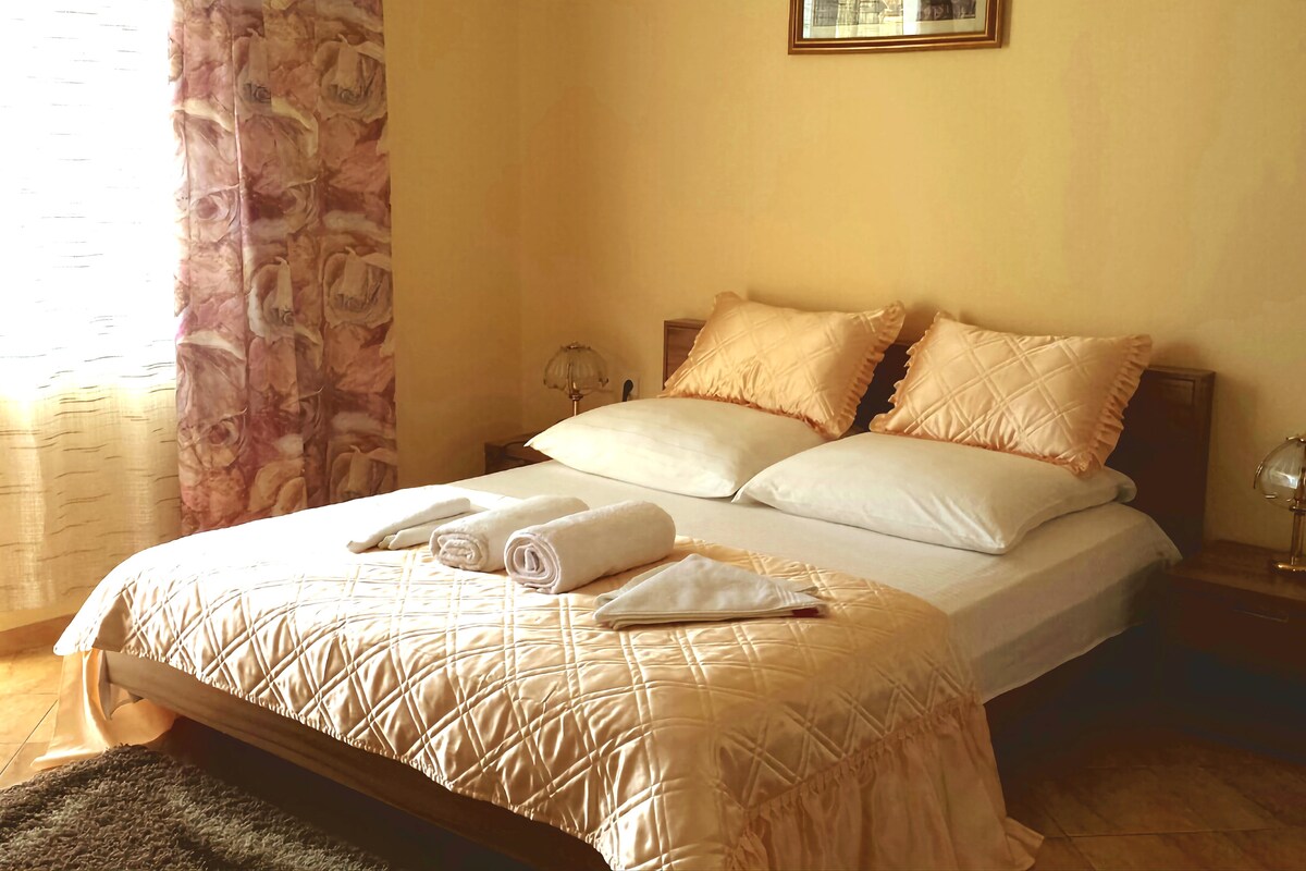 Acogedores apartamentos de doble habitación para 4 personas. Hay 1 cama de matrimonio y 2 camas individuales en el interior. El apartamento está equipado con cocina propia, baño, TV, aire acondicionado y conexión wifi gratuita. Solo hay 5-7 minutos a pie para llegar a la playa. La tienda de productos más cercana y un restaurante con comida local, en 3 minutos. El apartamento está rodeado de jardín del Adriático con barbacoa.