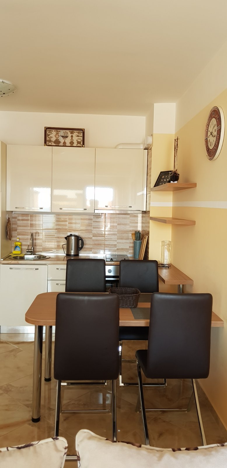 ¡Disfruta de unas maravillosas vacaciones mediterráneas en un pequeño y hermoso pueblo costero de Ulcinj! Apartamento privado situado cerca de playas, restaurantes, tiendas de comestibles, etc. Este apartamento de 44 metros cuadrados te ofrece lavavajillas, lavadora, cocina totalmente equipada, wifi, TV, cama tamaño king, sofá cama, buen almacenamiento, aparcamiento gratuito y balcón con hermosas vistas al atardecer. ¡ Bienvenido!