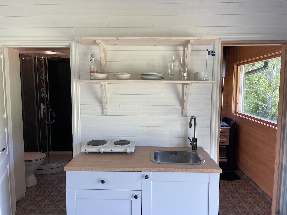 En nuestras instalaciones, contamos con una auténtica panadería del pueblo del siglo XVIII. Estándar moderno en un ambiente de estilo rural, con baño, cocina y loft para dos. Entrada privada y una terraza para cenas al atardecer. Es una base ideal para explorar la zona a pie, localmente o en coche por el archipiélago. Estocolmo en ferry fue muy fácil. Si quieres alojarte en un sitio con cocina, el supermercado está a solo 3 minutos a pie.