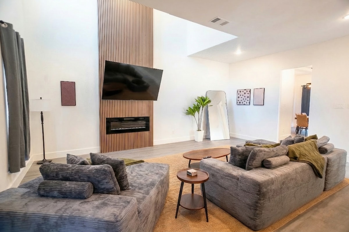 Moderna y elegante, esta casa de 4 dormitorios se encuentra en una ubicación privilegiada entre el lujoso barrio Uptown de Dallas y el excéntrico barrio Downtown/Deep Ellum. ¡Trae a tus amigos y familiares para una estancia de lujo a solo 5 minutos del centro de la ciudad! ¡Organiza la mejor cena íntima aquí con nuestra zona de minibar o una pequeña fiesta para ver el gran partido en la televisión de pantalla grande con barra de sonido! ¡Con un patio trasero privado también, esta casa es perfecta para tus bebés peludos y familia! ¡Ideal para huéspedes que buscan mucho espacio!