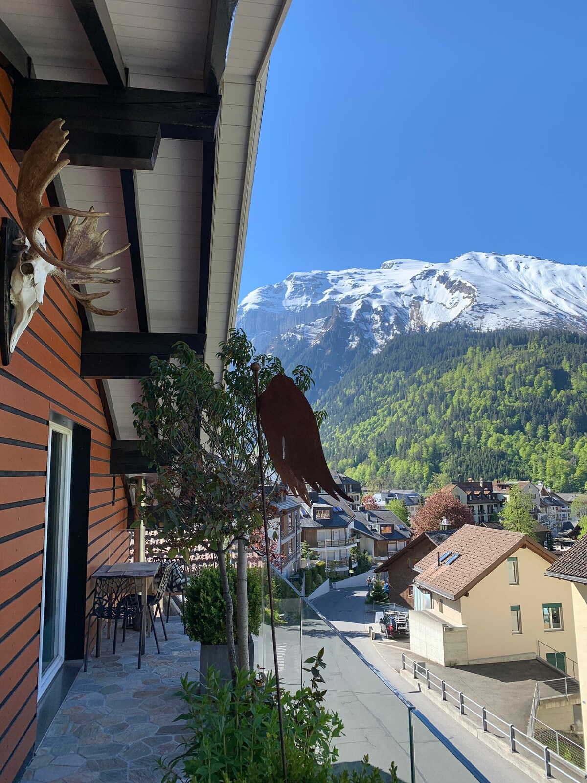 Disfruta de la relajación en nuestro ático céntrico en Engelberg. Disfruta de la acogedora calidez de la chimenea y relájate en nuestra sauna después de un día lleno de acontecimientos en la montaña. Nuestro apartamento está a solo unos minutos de Titlisbahn, el centro del pueblo y la estación de tren. ¡Reserva ahora y déjate encantar por el encanto de Engelberg! Debido a una obra en el barrio, es posible que actualmente haya contaminación acústica.