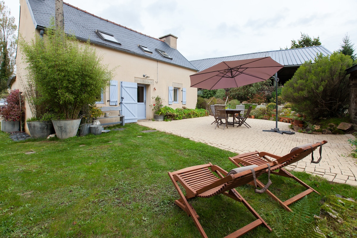 Casa tranquila, ideal para familias (5 personas), independiente, con terraza grande y jardín privado. Póngase en contacto con nosotros para el alquiler de la tercera habitación, acceso por el exterior con inodoro y bañera cf fotos. 40€ la noche. Situada a 13 km del océano, es un lugar ideal para visitar el Finisterre de norte a sur y de este a oeste. ¡En el fin del mundo! El Menez Hom (330 m) a 5 minutos, ofrece una vista de 360 grados y da una idea de todo lo que le espera. Vida cultural rica e intensa...
