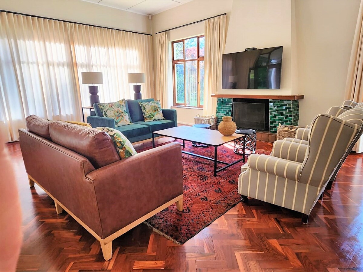 Esta es una casa única, cómoda, totalmente equipada y con cocina, con capacidad para 8/10 personas. Escondida en un rincón tranquilo de nuestra granja en funcionamiento, tiene vistas a una sección prístina del río Wilge, con la famosa cascada y la montaña Nelson's Kop proporcionando un paisaje espectacular. Los huéspedes podrán disfrutar de una paz absoluta, vistas ininterrumpidas y paseos en casi todas las direcciones. Ten en cuenta que la propiedad es remota y que los últimos 200 metros de la carretera de acceso requerirán un vehículo con mucha distancia al suelo.