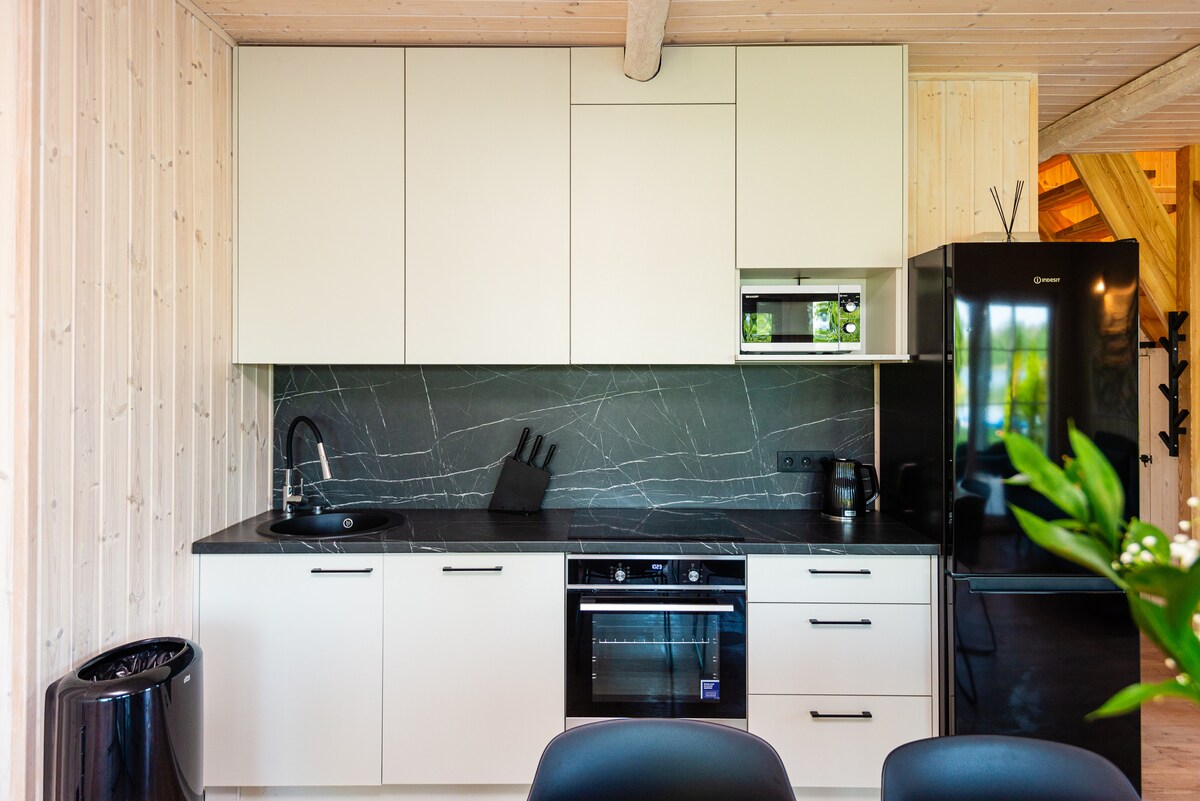 Made of 2 shipping containers, surrounded in forests, swamp and fields. This quiet place perfect for relaxing. It is located 7 km, from the centre of Tauragė city. Most important thing in our place are the view to the pond and swamp. Thats why the interior are very minimal, without any loud colours. The view changes in every season and every season can offer a diffrent feeling. Misty fields with swans in a pond or a bright sunshine cuddling your nose in the morning are the usual.