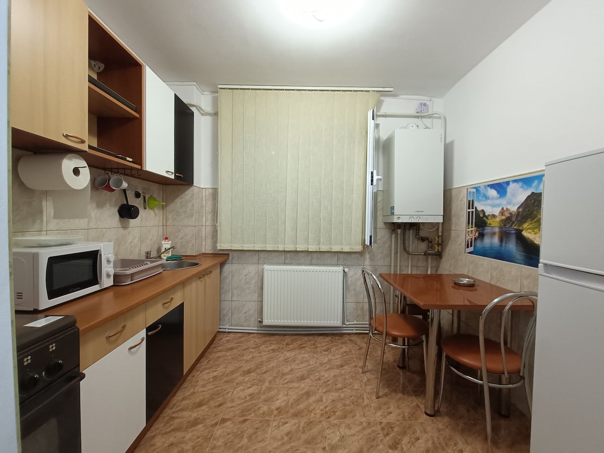 Totalmente equipado y amueblado, apartamento de 80 metros cuadrados, a 100 metros de la parada de autobús. El aparcamiento es fácil y gratuito. La propiedad está cerca del parque Marghiloman ( 3 minutos a pie) y a 20 minutos a pie del centro de la ciudad. El apartamento está muy bien atendido para sus necesidades, ya sea viajando en grupo o en familia. La propiedad ofrece una gran comodidad, seguridad y protección para los huéspedes. Hablo inglés, alemán y un poco de ruso. Ich spreche Deutsch, Englisch und bissen Russisch.