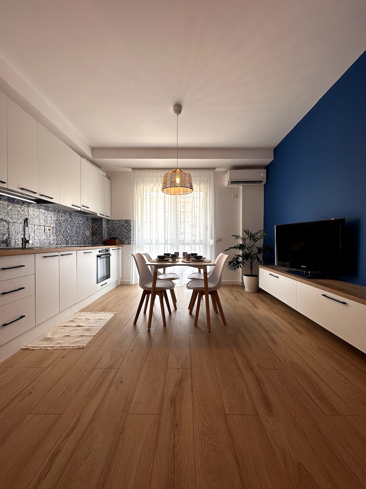 Descubre Vlore desde nuestro impresionante apartamento junto al mar, directamente frente al Adriático. Ubicado en el vibrante paseo marítimo de Lungomare, estarás en el corazón de la mejor escena culinaria de la ciudad, rodeado de restaurantes y bares de primer nivel que ofrecen un servicio excepcional y platos deliciosos. Este espacio de diseño elegante ofrece no solo una impresionante vista al mar, sino también la comodidad de la vida urbana con un ambiente tranquilo frente al mar. Perfecto para aquellos que buscan relajación y aventura.