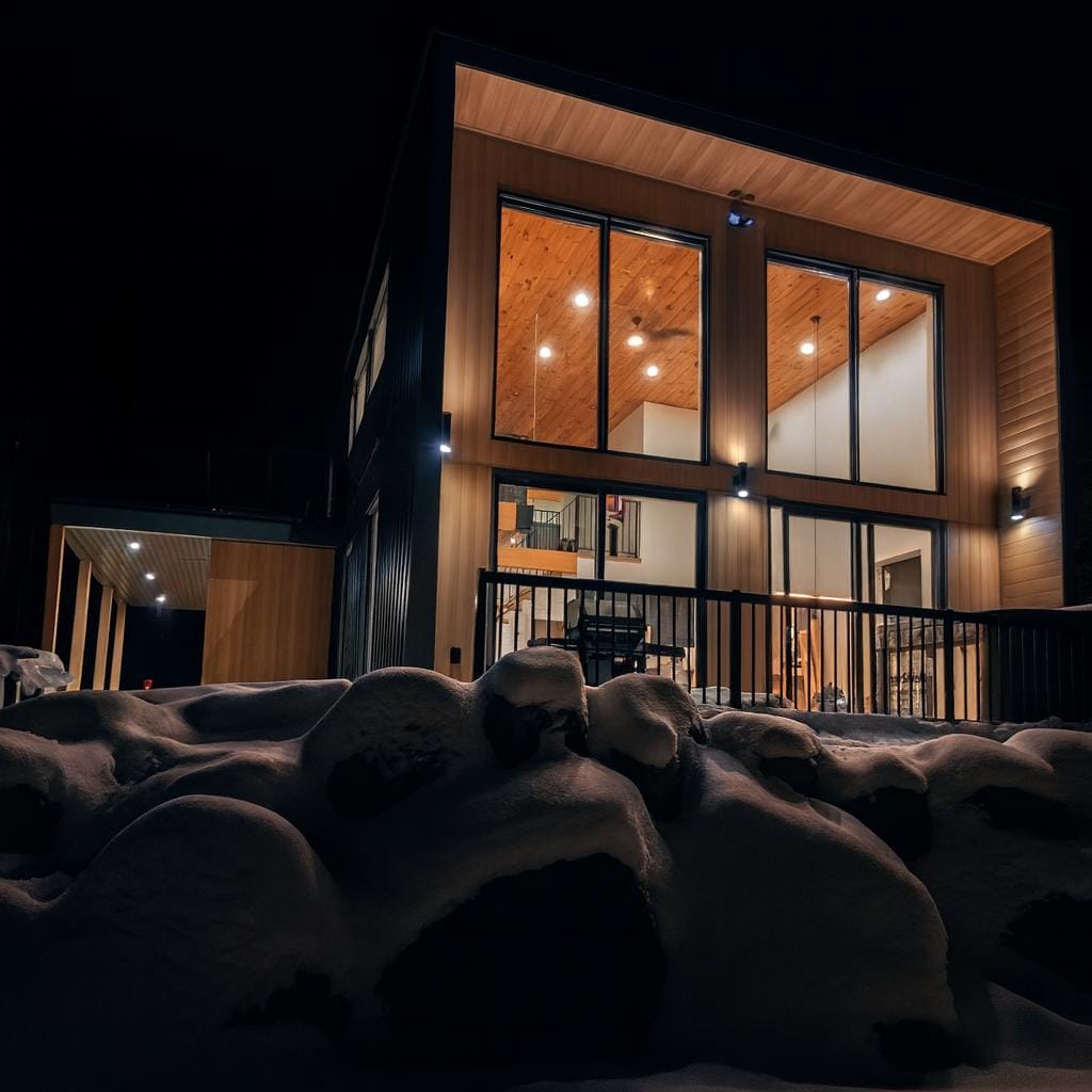 Nuestro chalet en el bosque nórdico es perfecto para pasar tiempo de calidad en pareja (o con un niño), o para un descanso de trabajo (con wifi de alta velocidad). El interior de madera es cálido y acogedor. Las ventanas de altura completa ofrecen impresionantes vistas sobre un valle boscoso. La cocina y el salón de concepto abierto te mantienen en la conversación mientras cocinas. Si prefieres cocinar al aire libre, hay una chimenea con parrilla y mesa de comedor al aire libre. A solo 70 minutos en coche de Montreal. El lago está a 25 minutos a pie si aparcas cerca.