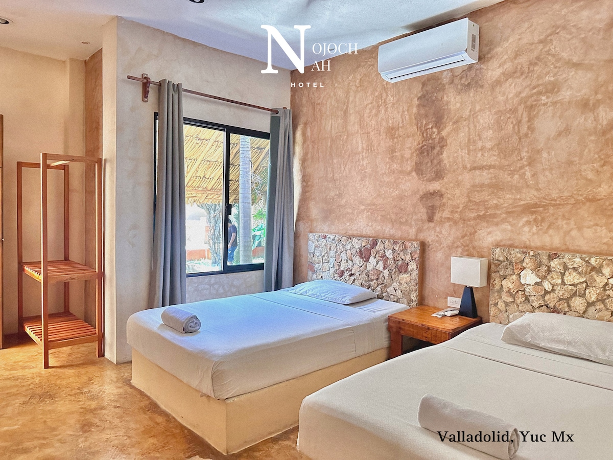 ACOGEDOR CUARTO UBICADO EN LAS INSTALACIONES DEL HOTEL 41 VALLADOLID, RODEADO DE UN AMBIENTE NATURAL Y VEGETACIÓN TÍPICA DEL ESTADO. CERCA DE NOSOTROS SE ENCURTAN ATRACTIVOS TALES COMO CHICHEN ITZA, CENOTES DE SAMULA Y XKEKEN, EXCONVENTO DE SAN BERNARDINO, ENTRO MUCHOS OTROS. SEGURAMENTE TE VA A FASCINAR MI LUIGAR, YA QUE ES EXELENTE APARA DESCANSAR LEJOS DEL RUIDO , CUENTA CON ÁREAS VERDES, PISCINA, COCINA-CAFETERÍA, AMPLIO APARCAMIENTO.