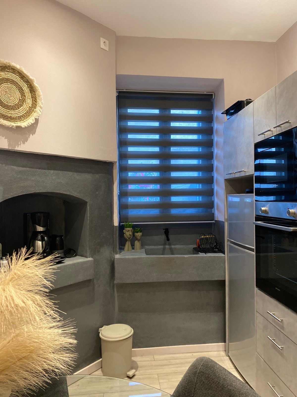 Καλαίσθητο διαμέρισμα 45 τμ με υπέροχη θέα στον φυσικό κόλπο της πόλης της Σάμου. Η απόσταση από το κέντρο είναι 1,2 χλμ., με ιδιωτικό χώρο στάθμευσης. Βρίσκεται σε μια ήσυχη και ασφαλή γειτονιά και διαθέτει ενιαίο χώρο καθιστικό με κουζίνα, μεγάλο μπαλκόνι, ένα υπνοδωμάτιο και ένα μπάνιο.Μπορει να φιλοξενήσει έως τέσσερα άτομα καθώς διαθέτει διπλό κρεβάτι και καναπέ που γίνεται κρεβάτι. Στην περιοχή υπάρχει σούπερ μάρκετ (1 χλμ),παραλία(1,5 χλμ), γυμναστήριο (200μ) .