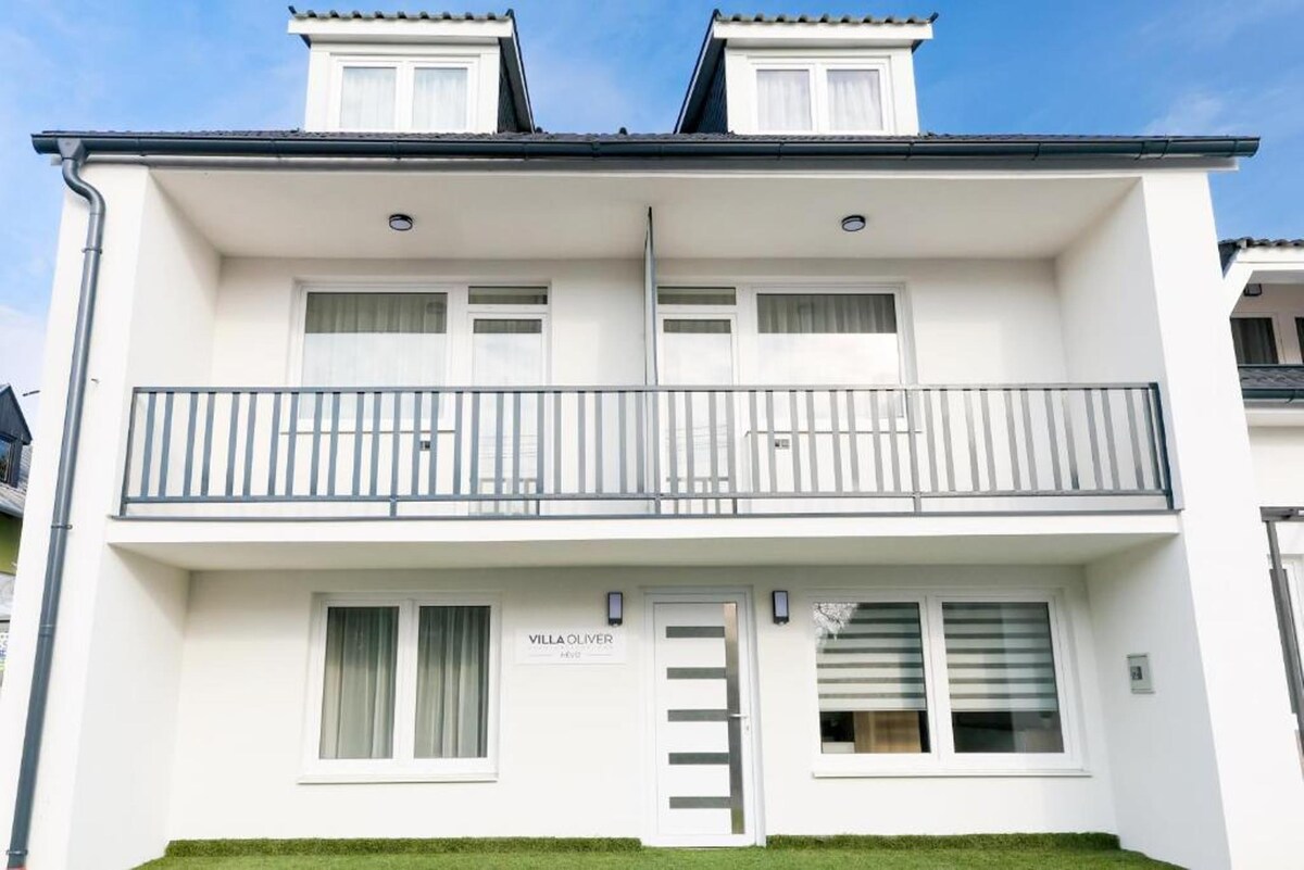 Villa Oliver 2 Hévíz cuenta con alojamiento con wifi gratuito, aire acondicionado, aire acondicionado, jardín y terraza. Todos los alojamientos cuentan con TV de pantalla plana, baño privado con bañera o ducha y cocina totalmente equipada. Los huéspedes del apartamento pueden disfrutar de un desayuno continental.