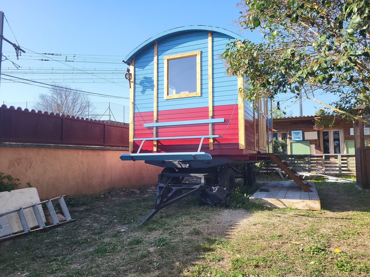 «Au Petit Bonheur», caravana independiente de tamaño mediano, equipada y decorada con buen gusto. Le seducirá si es amante de la naturaleza y la tranquilidad. La ventaja del camping pero privado...cama de 2 plazas, baño, aseo.¡La única condición: hacer un máximo de 1,80 m! ....Televisión, Wifi...pequeña cocina equipada: microondas, 2 fuegos de gas, mininevera, cafetera,vajilla..Sábanas y toallas. Terraza cubierta. Jardín con tumbonas y barbacoa (se proporciona leña y carbón). ¡Acceso a la piscina!