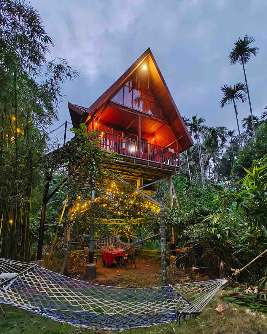 Bienvenido a nuestro concepto de vida sencillo con naturaleza y estilo de vida agrícola. Nuestra casa del árbol dúplex es una pequeña casa construida a 35 pies de altura, que se encuentra en una plantación orgánica a orillas del río Kabani. Está en dos niveles; el nivel inferior tiene dormitorio, baño y terraza. Recomendable para una estancia relajada. El desayuno es de cortesía. Sin cargos adicionales por actividades. No se permite la música alta, fiestas ni grupos de despedida de soltero, por favor.
