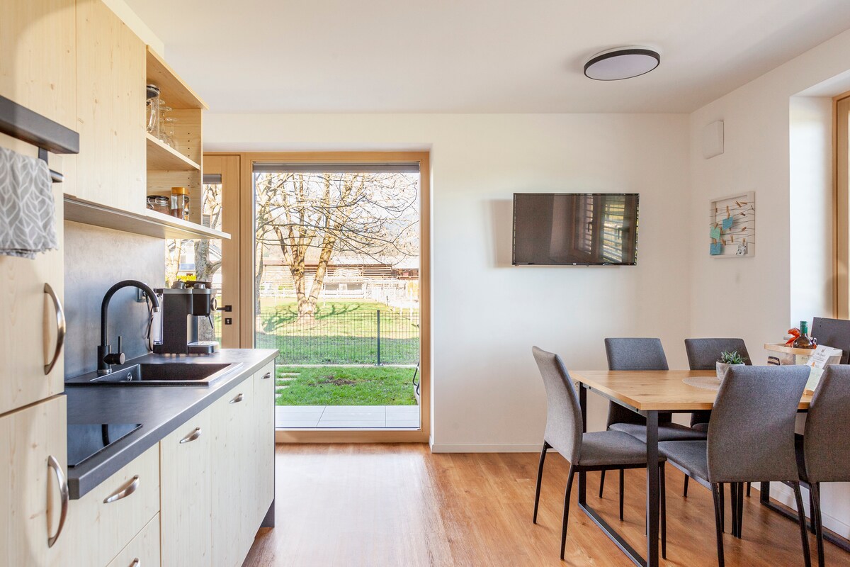 Ubicado tranquilamente a solo unos pasos del lago Bled, el nuevo Chalet Žana con apartamentos ofrece impresionantes vistas a la naturaleza intacta. El Chalet Žana ofrece elegantes apartamentos ecológicos (construcción de madera maciza), amueblados en un estilo minimalista moderno. El interior de madera con ventanales panorámicos del suelo al techo ofrece vistas al impresionante paisaje.