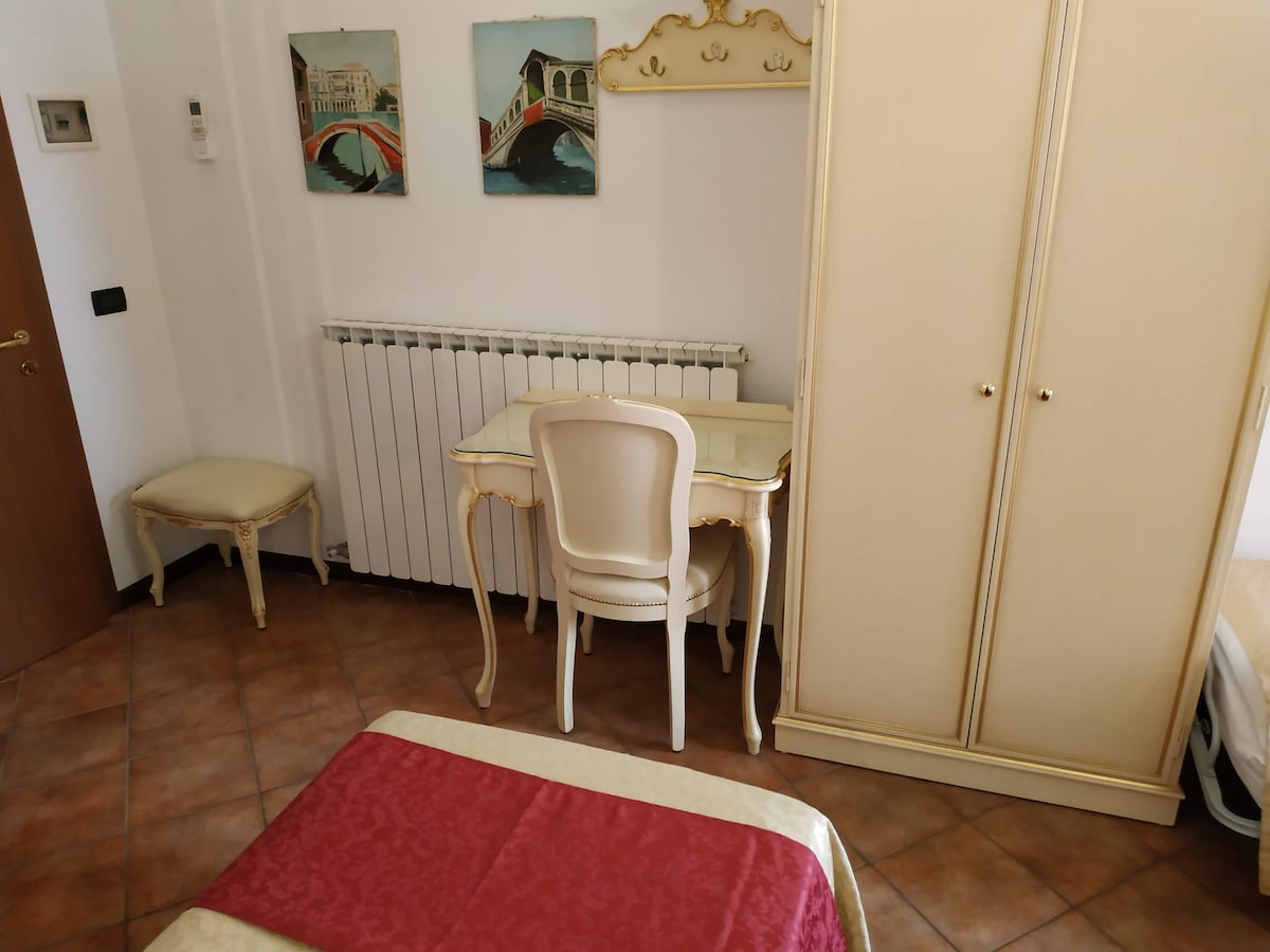 Ofrezco habitaciones triples de estilo veneciano con baño privado en el corazón de Venecia (a 7 minutos del puente de San Marcos/Rialto) en una casa de huéspedes típica del siglo XVII. Todas las habitaciones están en los pisos superiores y no hay ascensor. El registro de entrada es de 15:00 a 19:00 horas (de 19:00 a 21:00 horas con un cargo adicional, no se puede hacer el registro de entrada después de las 21:00 horas, no se puede hacer el autorregistro de entrada). El impuesto municipal local (3 € por persona y noche) no está incluido y debe pagarse en efectivo en el momento del registro.
