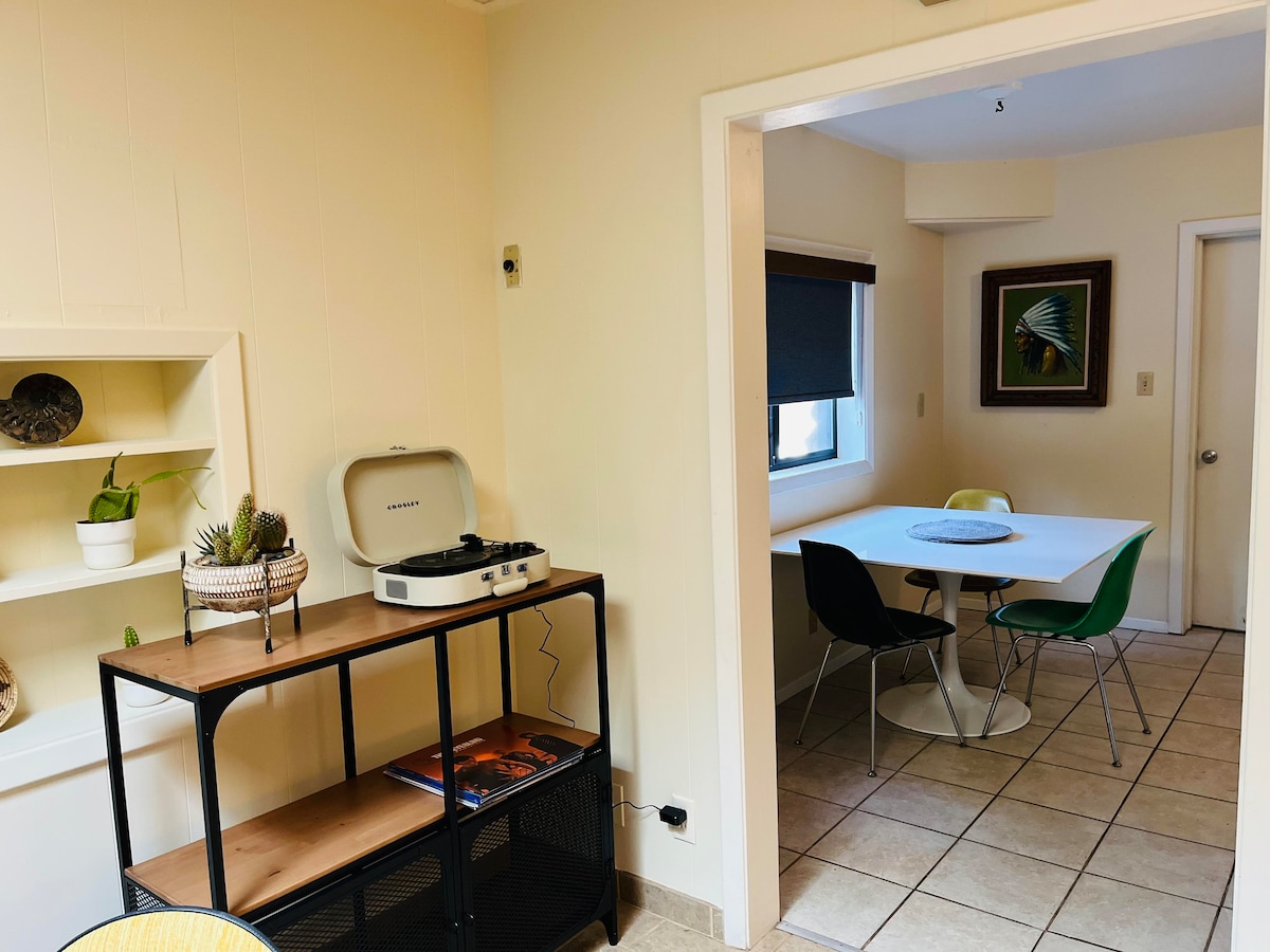 Siéntete como en casa en este acogedor apartamento que se encuentra a poca distancia a pie de tiendas, restaurantes y del centro de Prescott. Disfruta de un dormitorio con 2 camas completas en una habitación con capacidad para 4 personas. Esta unidad está equipada con una cocina moderna, sala de estar contigua y 1 dormitorio. Incluye un pequeño patio trasero vallado y una ducha a ras de suelo. Internet gratuito y Direct TV. Este es el espacio perfecto para explorar el centro histórico de Prescott, el famoso palacio de justicia, Whiskey Row y el Museo Sharlot Hall.