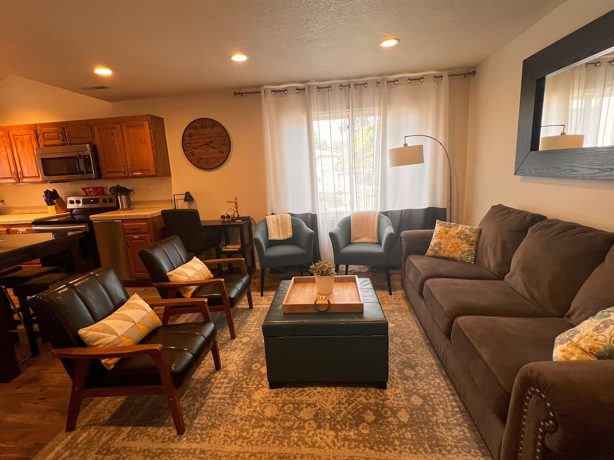 Enjoy a getaway on your way to Zion National Park, Sand Hollow Lake, Snow Canyon, Bryce Canyon, Grand Canyon, Lake Powell, Horseshoe Bend, Monument valley, Arches or Tuacahn. This cozy place has a Queen size bed, a couch pull out into a Queen size bed in the living area, and a Queen size blowup mattress. Right off the highway and next to shopping. Great hideaway experience at this cute one bedroom casita all to yourself with its own private entrance driveway and self check in.