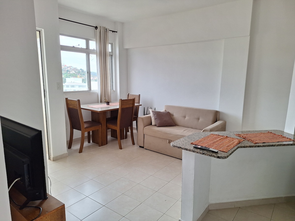 Apartamento en el centro de la ciudad, con mercados,farmacias,panaderías, estación de autobuses, lugar donde se detiene el Buser y restaurantes a menos de 5 minutos a pie. Está a menos de 1 km de Ufv. Está ubicado en un condominio con un portero las 24 horas. Tiene capacidad para 3 personas, con 1 colchón individual, ropa de cama y almohada disponibles. Kit equipado con estufa eléctrica, nevera, microondas y utensilios básicos de cocina.