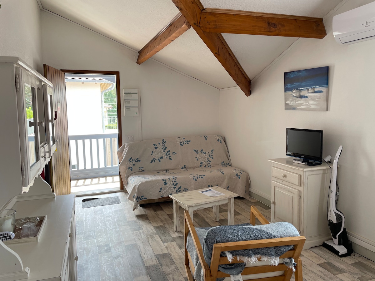Nice and spacious 30m2 studio and 5m2 loggia/terrace, double exposure East and South, quiet overlooking to the pine forest, second floor without elevator of a small residence. Beach, shops, market and entertainment 100m from the apartment, hundred of free car parks available closed to the building, where you can park your car, it is the insurance of holidays without a car closed to the best european beack breaks and surf spots ! Keep calm and speak in english ! I'll answer all your questions !