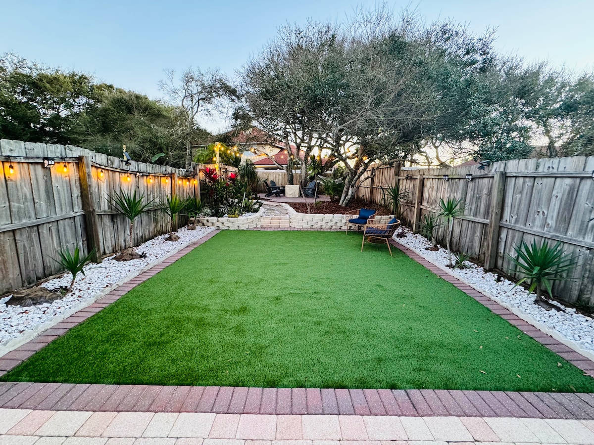 ¡Te damos la bienvenida a tu verano sin fin! Esta casa adosada de 2 dormitorios y 2 baños completos cuenta con una cocina completa, un patio trasero privado vallado, un dormitorio en la planta baja y un precioso patio con asientos al aire libre, chimenea y parrilla. ¡Atrapa el amanecer en la playa y la puesta de sol con vistas a la interestatal, ya que ambos están a un corto paseo de distancia (menos de 10 minutos)! Pura serenidad, lejos del bullicio del centro de St. Augustine, pero a menos de 5 millas de nuestra ciudad histórica.