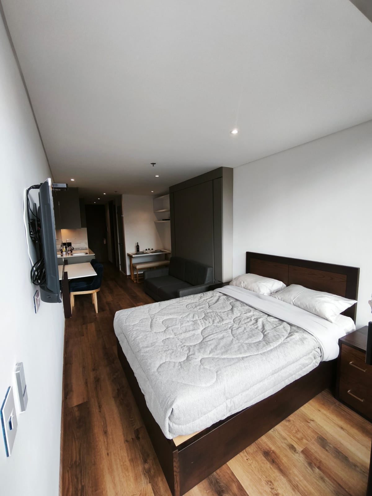¡Bienvenid@ a tu rincón cómodo en Villavicencio! Este aparta-estudio es perfecto para parejas, viajeros solos o pequeños grupos que buscan una estadía práctica y tranquila. Disfruta de un ambiente limpio, acogedor y funcional, a solo 2 minutos en carro de la Zona Rosa y de comidas rápidas de la Grama y a 3 minutos del centro de la ciudad, además con una tienda Ara justo al frente, ideal para hacer compras rápidas.