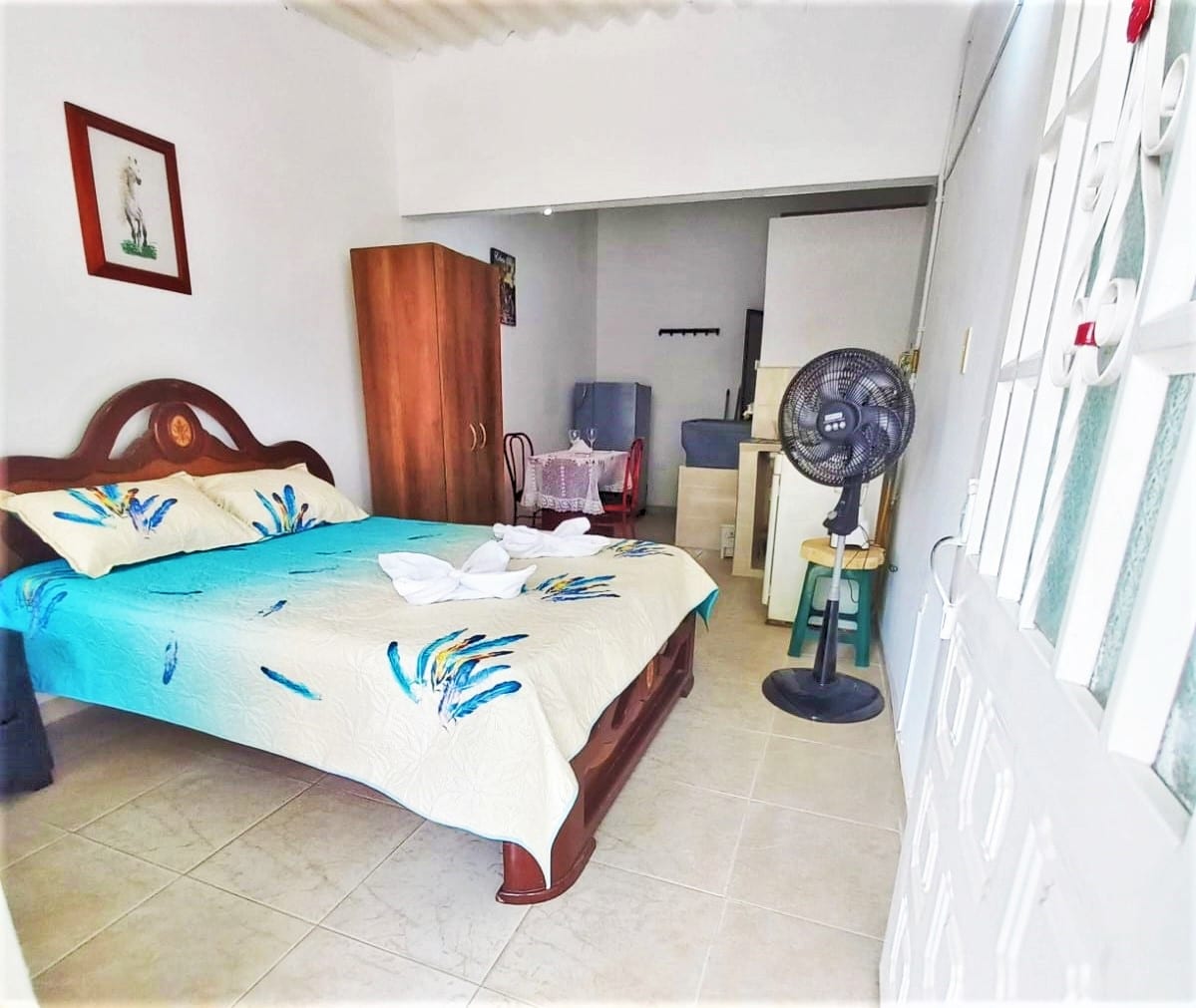 Lugar de descanso apto para dos personas, bien equipado, ideal para estancias largas. !!Ya cuenta con Aire Acondicionado!! Totalmente privado, todo en 1 solo espacio acogedor, con puerta directamente a la calle, fácil acceso. Cuenta Cocina, lavadero, Wifi, nevera, comedor, baño, suministro de agua las 24 horas (Reserva de 2.000L), en fin, lo necesario para una estancia placentera. Nota: Parqueadero gratuito!!