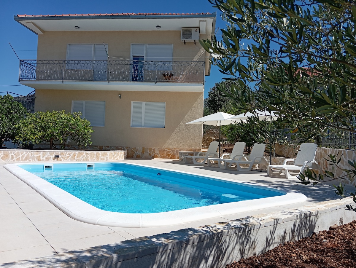 This is a perfect villa for those who want to enjoy peace and quiet but still 5 to 10 minutes walk to the beach and to the center of tipical Dalmatian village where you can find restaurants, supermarkets, coffe shops, bars and market.Villa has been renovated and everything is new,beds, showers,bbg,heated pool,kitchen aplliances,air condition. The house is perfectly located, just 30 min car drive, from national park Krka with beautifull waterfalls and 3 UNESCO cities Sibenik, Trogir and Split.