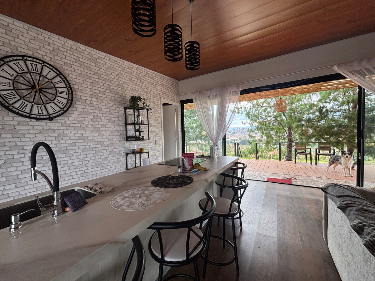 Bienvenidos a este mágico y acogedor refugio rodeado de hermosos árboles y cascadas, aquí te acompañarán el canto de los pájaros y la plenitud de la vida de montaña. Ideal para amantes de la naturaleza que buscan un contacto íntimo con ella y desconectarse de la agitada vida de la ciudad. Podrás emprender caminatas en el bosque o descansar en la terraza contemplando impresionantes paisajes boyacenses. Contarás con todos los servicios de un glamp de lujo a escasos minutos de la civilización.