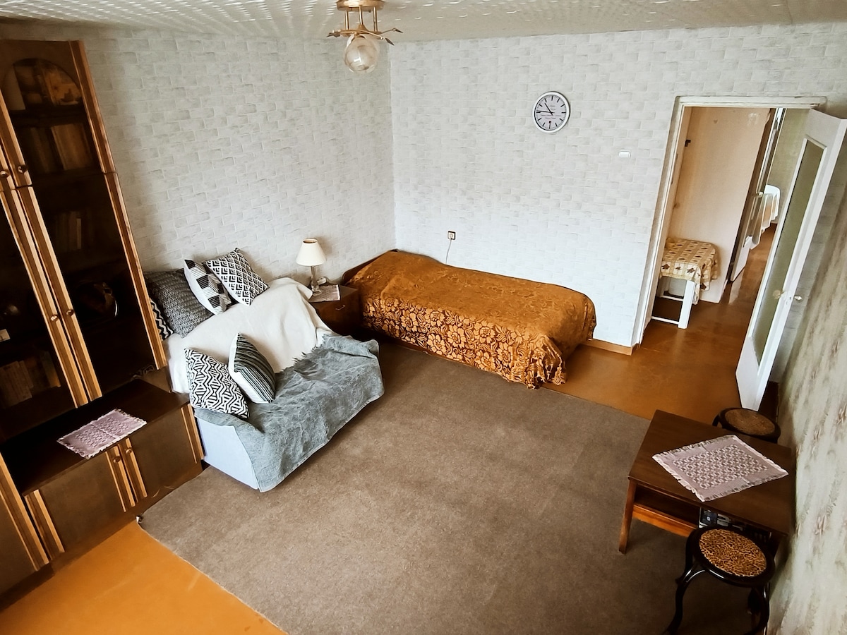 Bienvenido a la hermosa ciudad de Daugavpils y a mi acogedor apartamento, que se encuentra en una zona residencial tranquila con los lugares históricos más bellos de nuestra ciudad: la Colina de la Iglesia que ha reunido las iglesias de cuatro confesiones diferentes: la Catedral de Martín Lutero, la Iglesia Católica Romana de la Santísima Virgen María, la Catedral Ortodoxa Rusa de San Boris y San Gleb y la Iglesia de la Comunidad de Viejos Creyentes. El transporte público y el centro de la ciudad también están a poca distancia a pie.