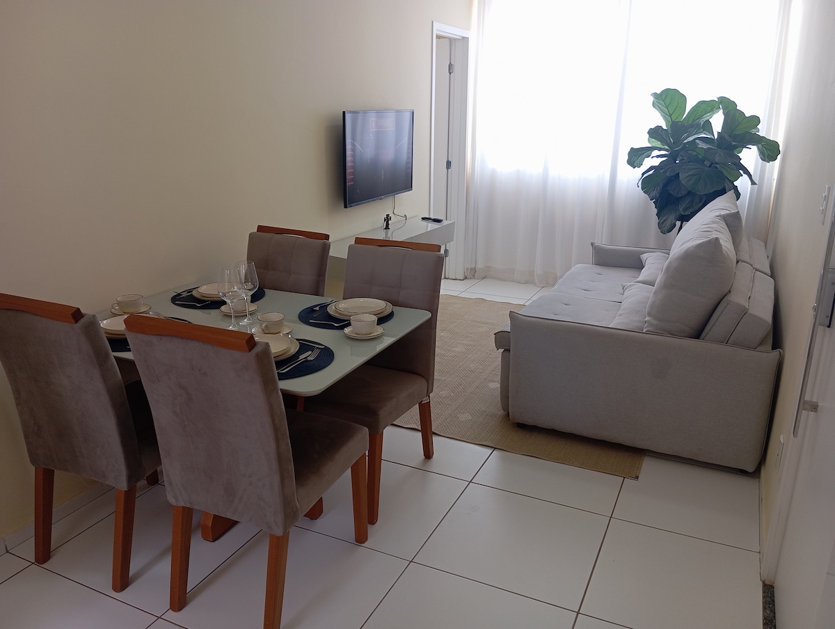 Descansa cómodamente en este apartamento ubicado en un condominio tranquilo con conserje las 24 horas, a pocos minutos de Shopping Conquista Sul. Qué encontrarás: • 2 cómodos dormitorios con camas limpias y bien ventiladas • Habitación con sofá, TV y wifi rápido. • Cocina equipada con utensilios, fogones y nevera • Baño limpio con ducha caliente • Aparcamiento en las instalaciones Ideal para aquellos que buscan comodidad y confort, ya sea en un viaje de negocios o de placer.