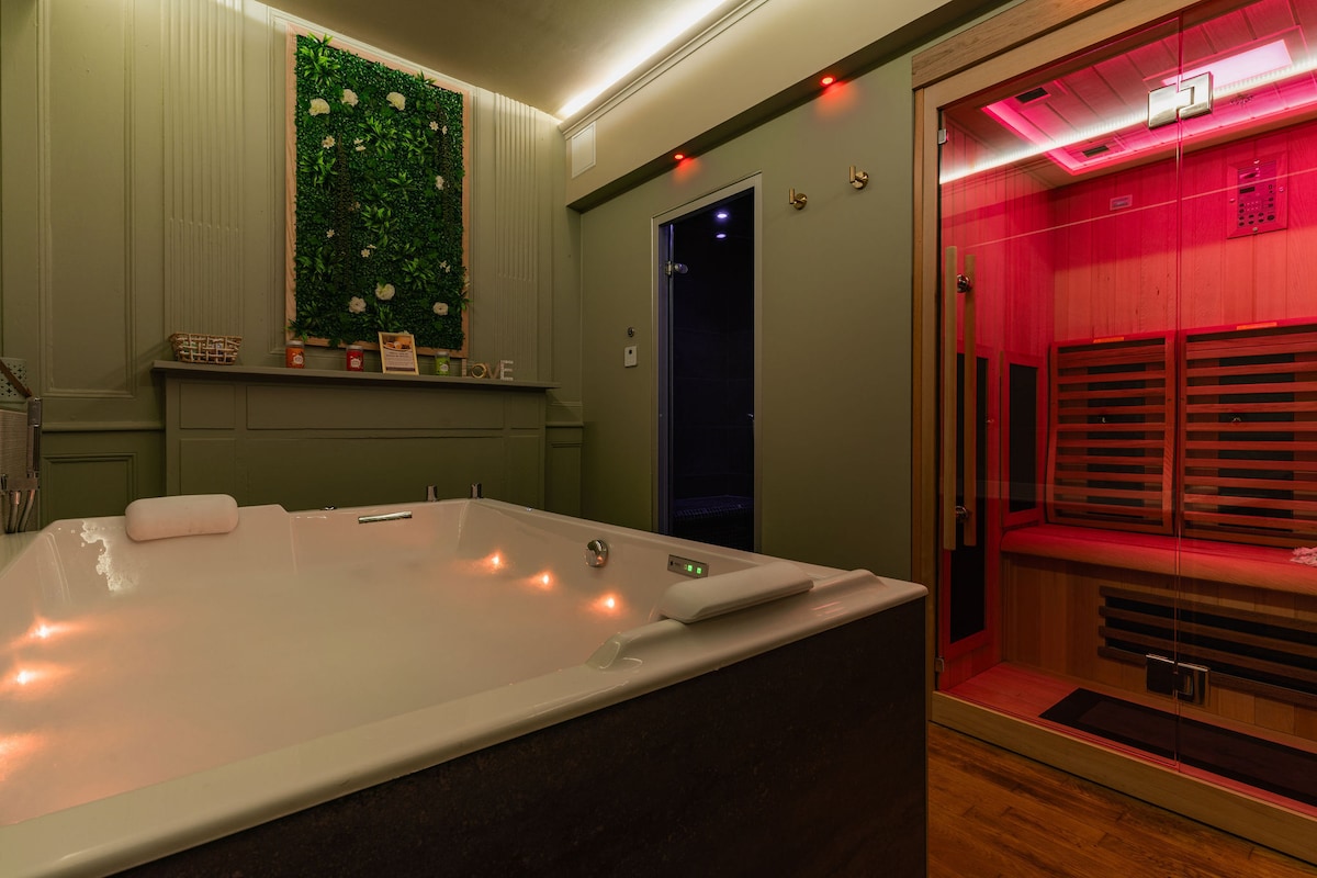 Entre encanto medieval y bienestar, viva una escapada al Love Castel, un lugar único dedicado a la relajación y el romance. Disfrute de un espacio privado con bañera doble, baño turco y sauna para un momento de relajación en pareja, en un ambiente cálido e íntimo. Y para que su estancia sea aún más memorable, déjese sorprender por una habitación secreta que descubrirá en el alojamiento.