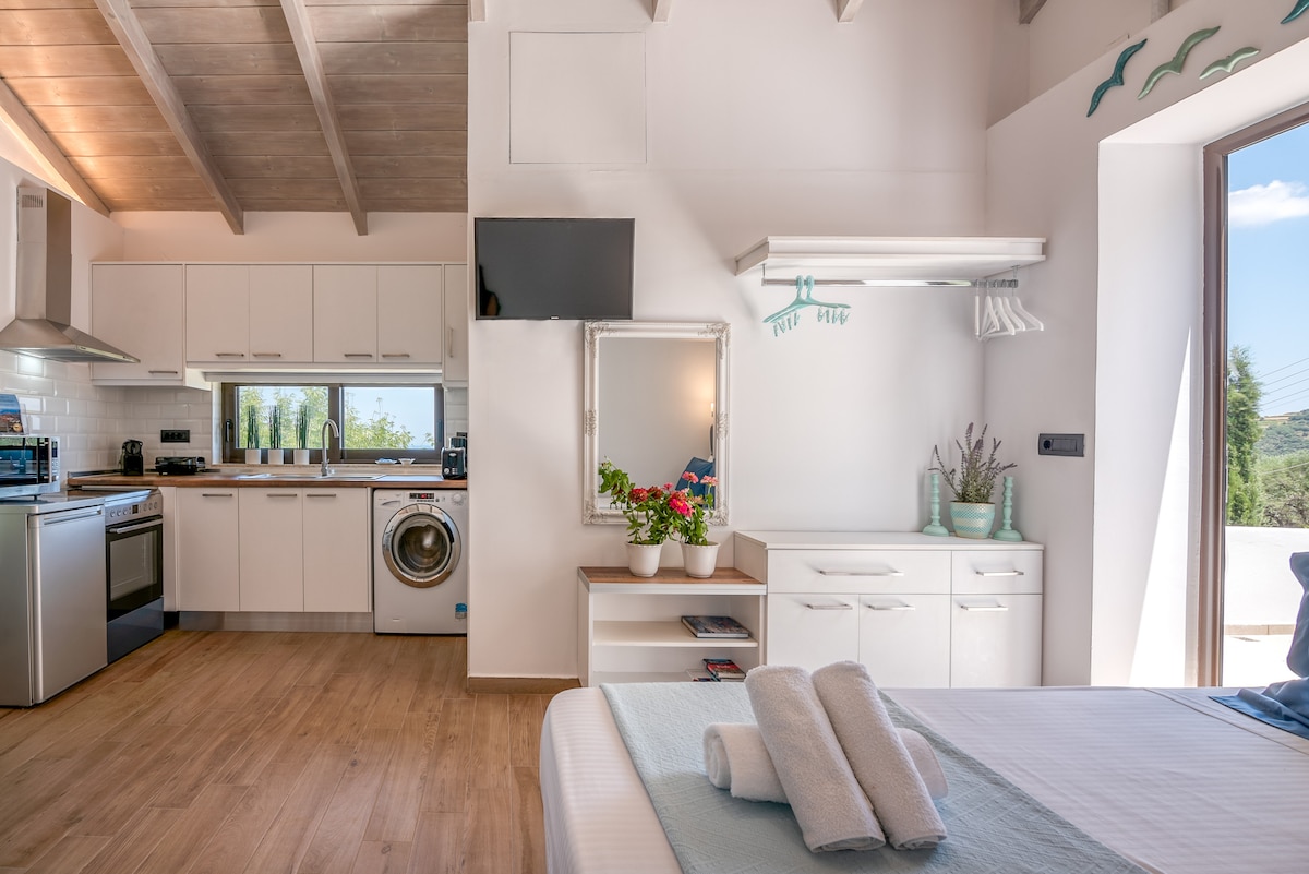 El apartamento Anaxagoras consta de un complejo residencial de planta abierta y se caracteriza por un imponente arco veneciano original, que separa la cocina y la sala de estar del dormitorio. Tiene acceso directo a tu jardín (privado) con barbacoa y una gran mesa de comedor con vistas al mar. Todo ha sido renovado con mucho amor por los detalles tradicionales en 2017. Aquí puedes respirar un toque de historia cretense en un ambiente único y cómodo.