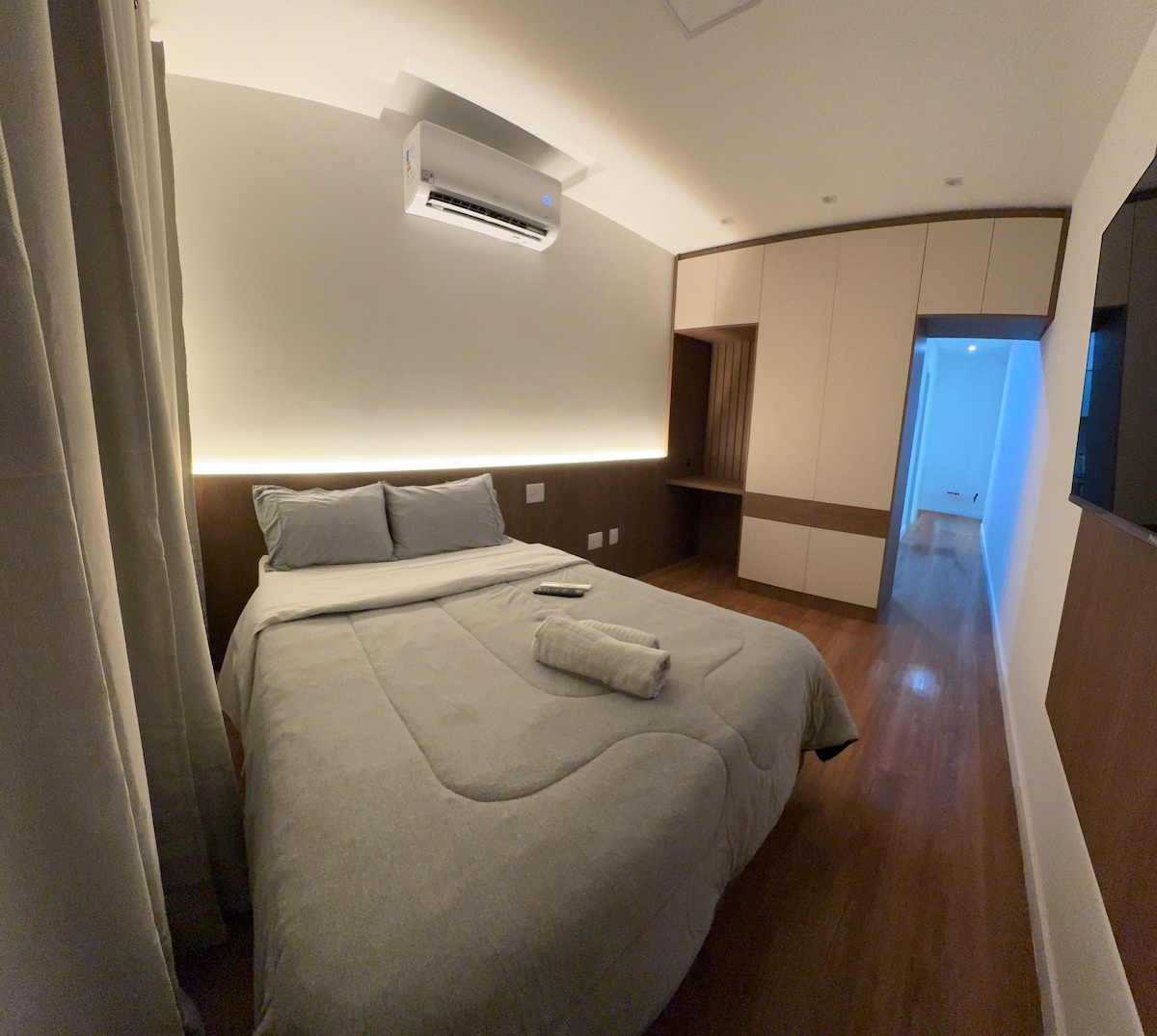 Nuevo apartamento en una zona privilegiada, moderna y completa. Fácil acceso para personas con discapacidad física. Cuenta con aire acondicionado, ventana opaca, wifi y espacio de trabajo. Cocina equipada: nevera, microondas, cafetera, electrodomésticos y estufa de inducción. Ropa de cama, plancha y lavandería en el edificio (uso de pago). Televisión con canales cerrados. Edificio con cámaras de seguridad, detector de humo, ascensor y aparcamiento gratuito en la calle. Ideal para aquellos que buscan comodidad, practicidad y excelente ubicación.