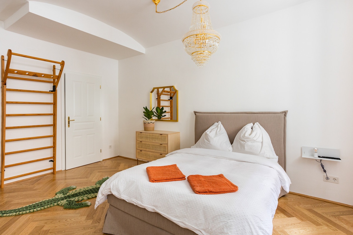 Inglés: ¿Vida urbana pero cómoda? Bienvenido al Nest, donde Viena se siente como un pueblo mientras que la vibrante vida de la ciudad está a solo 10 minutos. El espacioso apartamento ofrece todas las comodidades que tu corazón desea: internet rápido, una cama grande y cómoda, aire acondicionado, un sofá acogedor para largas noches de cine y una cocina bien equipada para experimentos culinarios. Básicamente, no necesitas salir de casa en todo el estilo de la moda pandémica.
