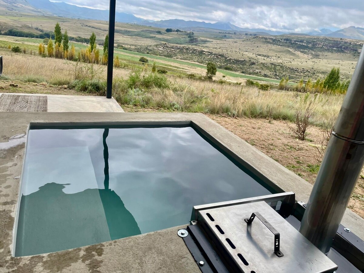 Una impresionante casa llena de luz brillante y natural. Frente al río y vistas al valle y a las montañas. Dos salas de estar, ambas con DSTV para que puedas ver deporte y cocinar al mismo tiempo. A solo 6 minutos en coche de la plaza Clarens y 26 restaurantes, pero puedes relajarte por completo en la tranquilidad del viento y el sol. Paseos encantadores. Mantas eléctricas y chimeneas de leña, cocina totalmente equipada, 4,5 baños para 6 dormitorios, incluido uno con 4 literas. Es enorme pero acogedor.