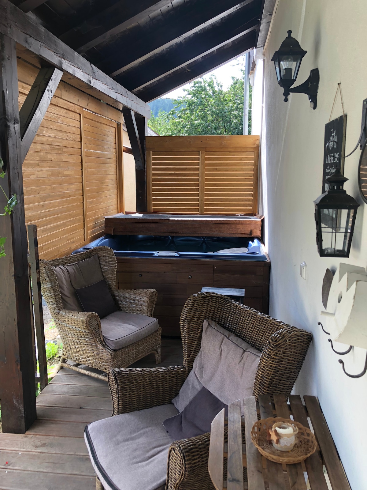 Es de madera, es cómodo, está en el jardín. En el campo de las Tierras Altas, construí una casa de campo moderna dedicada al descanso para mi familia. Inmerso en la tranquilidad del jardín con un pedazo de naturaleza. Huerto, estanques, espacio ilimitado. Pusimos este lugar en paz y relajación sin televisión. Hay disponibles un jacuzzi privado (sin función de hidromasaje) y una sauna por un cargo adicional de 500 CZK y 800 CZK por sesión de calentamiento, respectivamente.