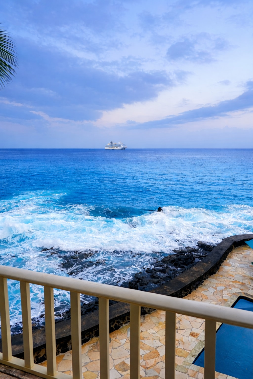 Absolute true oceanfront condo with a lanai that almost hangs over the ocean. Watch tide pools below where turtles and eels feed, and fall asleep to the sound of the waves. Both the bedroom and living room face the ocean, offering year-round dolphin sightings and seasonal whale watching—steps from the water. King bedroom with ocean views and central AC and Beach gear. Gated oceanfront saltwater pool, free reserved parking, and elevator. Honl’s Beach next door and downtown Kona two blocks away.