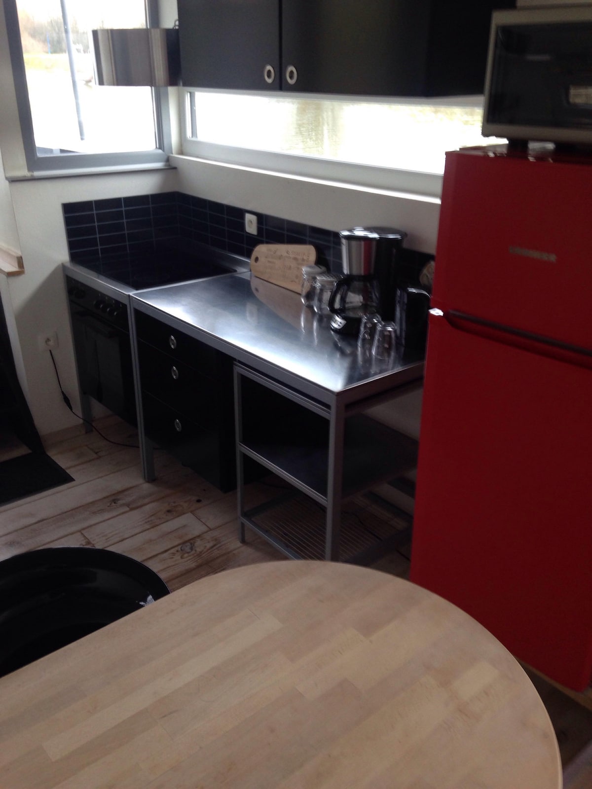 Gran estudio de 35 m2 en una casa flotante ubicada a dos pasos del centro de Profondeville. Espléndidas vistas al Mosa. Fácil acceso a Namur, Dinant, Annevoie, etc. Todo confort: Cuarto de agua privado Internet Televisión Nevera Microondas