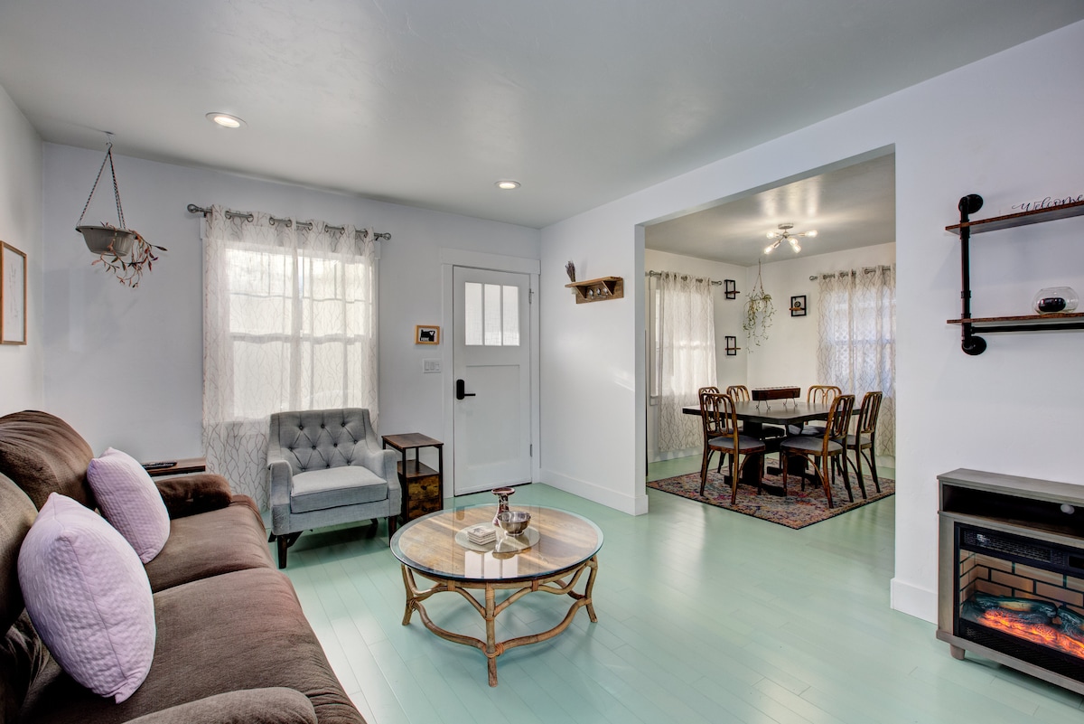 Relax with the whole family at this cozy 2 bedroom home. Everything you need for a peaceful getaway is provided. Kid friendly with a fenced back yard and quiet neighbors. Small breed dogs allowed - please check with us for larger breeds before booking. Sleeping accommodations include: Queen bed, Twin/Full bunk bed, Rollaway bed, a couch, a queen size air mattress, and a futon.