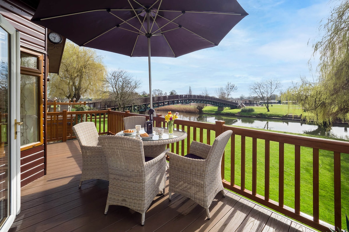 Kick back and relax in this calm, stylish space. Overlooking the bowling green from the decking and close to the River Avon our Lodge is the perfect base to explore this Historic area. Warwick & Kenilworth Castle are not far away and National trust properties are close by or just a walk into Shakespeare's Stratford upon Avon.