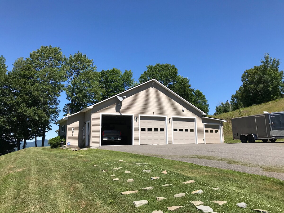 Stowe Skyline Home - built lovingly over generations, updated in 2025. Spacious and private, pet-free mountain home on 15 acres with mountain views, fireplace & free breakfast. 20 minutes to Mt. Mansfield. 4 bedrooms/3 full baths sleeps 12. Enjoy spacious 2 decks, weber grill, enormous fire pit, 65" tv, books, puzzles & games, Starlink, work areas w/TVs. Great plowing so you can get skiing! Guests rave about our "national park-level views." Sorry, no pets allowed as owners are allergic.