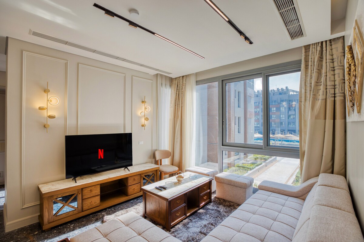 Apartamento de lujo de 3 dormitorios con piscina en Waterway New Cairo