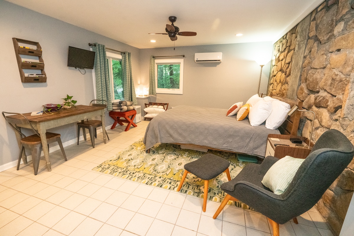 Apartamento estudio privado ubicado en un entorno boscoso tranquilo, a solo 14 minutos del centro de Asheville, a 25 minutos de Hatley Pointe y a ¼ de milla de N Main St. en Weaverville. La suite de invitados combina a la perfección la tranquilidad de un entorno arbolado con fácil acceso a las mejores atracciones del oeste de Carolina del Norte. Disfruta de un espacio de trabajo dedicado y cafeterías cercanas, ideal para teletrabajar o viajes de negocios. ¡Aceptamos estancias cortas o largas y estamos aquí para hacer que tu visita sea inolvidable!